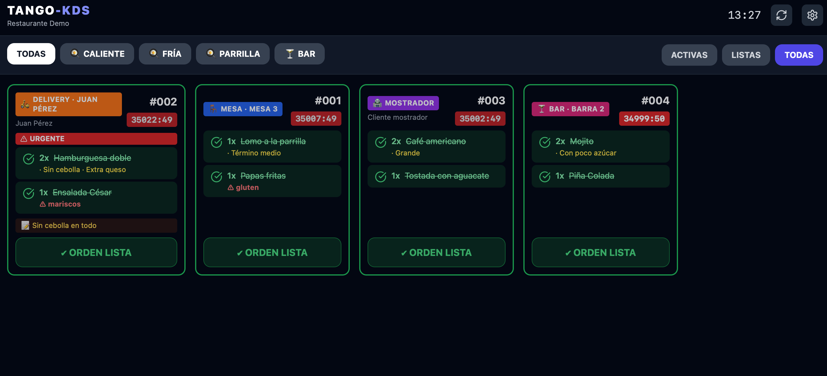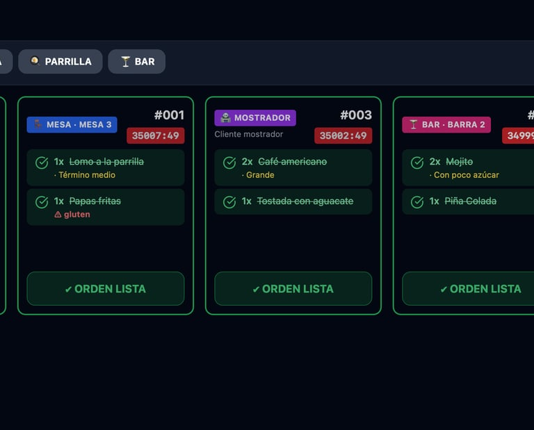 Un sistema de visualización de cocina de alto rendimiento diseñado para entornos táctiles con una sólida conectividad API para la integración local. Eficientiza el tiempo de los pedidos en sus distintas cocinas y bares. Esto garantiza que tengas un excelente servicio de cara al cliente.